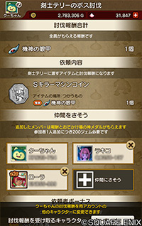 「パーティを組んで討伐」で討伐に誘ったキャラクターはそのボスモンスターから獲得できるアクセサリーに加え、追加報酬として「ふくびき券」がもらえます。