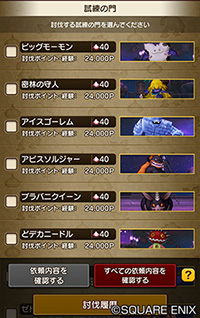 モンスターに「試練の門」の討伐を頼んで、「討伐ポイント・経験」を入手できる機能です。