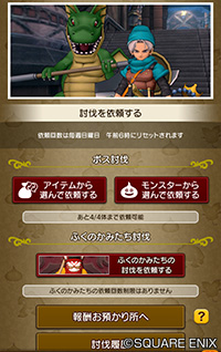『ドラゴンクエストX オンライン』ゲーム内で受注した討伐依頼、「日替わり討伐」「週替わり討伐」が表示されます。