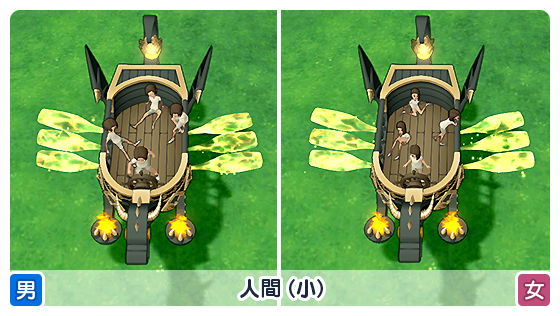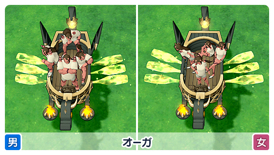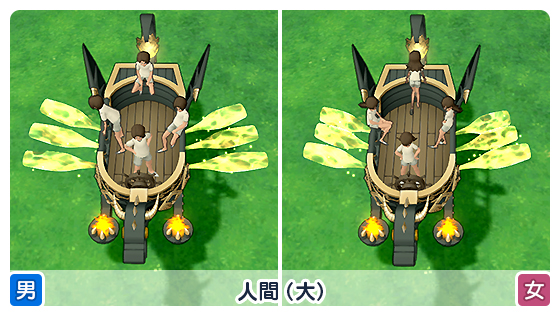 相乗りしたキャラクターは、座席や種族ごとに個性的な乗り方をして楽しませてくれます!