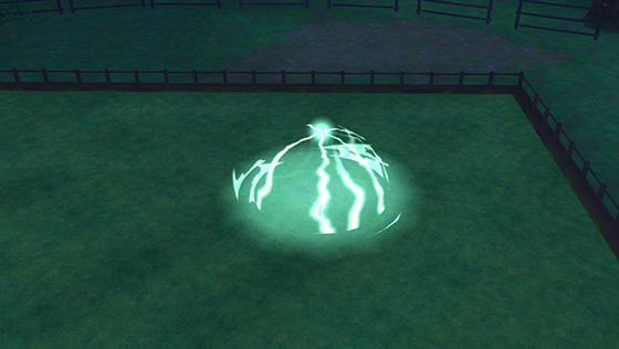 放電するドーム状のサークルや、落雷からの地割れエフェクトが特徴的。