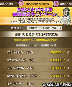 ※ 『ドラゴンクエストX オンライン』ゲーム内と共通の「日替わり討伐」は対象外です。