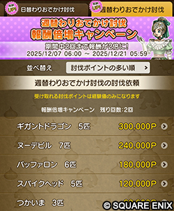 ※ 『ドラゴンクエストX オンライン』ゲーム内と共通の「週替わり討伐」は対象外です。