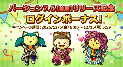 キャンペーン1 ~ バージョン7.6[前期]カウントダウンログインボーナス ~