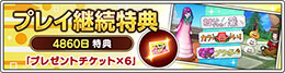 | 2024/12/6 |  プレイ継続4500日特典「プレゼントチケット×6」をお贈りしました。 |