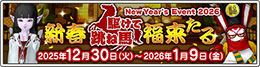 | 2025/12/10 |  バージョン7.6[前期]公開を記念して、「紫の上錬金石」などをプレゼントしました。 |