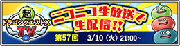 | 2026/3/18 |  『ドラゴンクエストX オンライン』のリアルイベント「ドラゴンクエストX春祭り2026」に関する情報を緊急特番で放送しました。 |