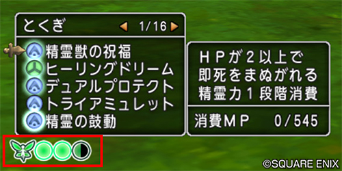 ・「精霊力」は、「隠者」の一部のとくぎを使用するために必要な力です。
