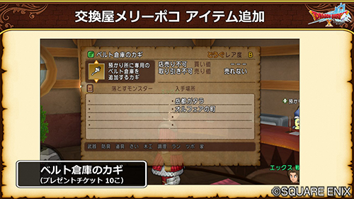 | ベルト倉庫のカギ | 10 こ | ※一回限定。「ガナサダイのこころ」をベルト倉庫に入れられるようになる対応に伴う追加 |