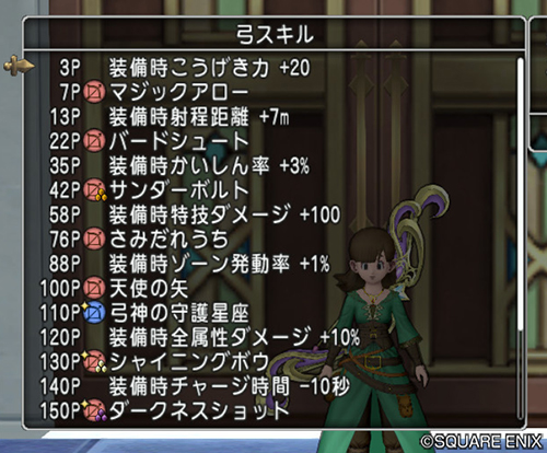 ・「弓神の守護星座」…周囲の味方に、効果時間中に有効な「状態変化無効(キラキラポーンの効果と同様)」の効果を付与します。