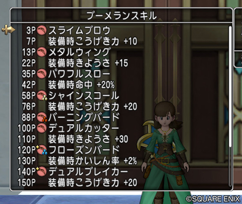 「こうげき力」と「きようさ」を上げやすいスキルラインです。スキルを割り振った場合、「きようさ」に依存して付与確率が変わる「レボルスライサー(I~III)」の「被ダメージ上昇」効果を高い確率で付与できます。