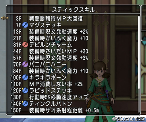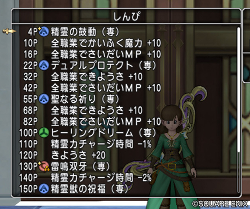 | 最初から使用可能 | ホイミ、ベホイミ、リホイミ、リベホイミ、ザオ、スカラ、キアリー、ズッシード、マホリー |