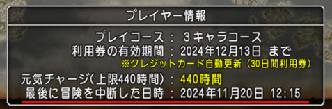 「最後に冒険を中断した日時」の確認方法