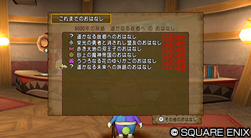 メインコマンドウィンドウ「せんれき」→「これまでのおはなし」で、メインストーリーの進行状況を確認できます。