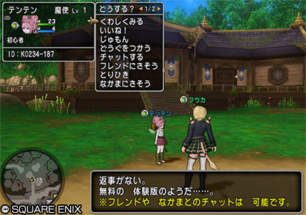 各種体験版で遊んでいる人は、「まわりに」チャットを使用しても、他のプレイヤーには表示されません。