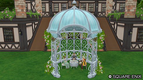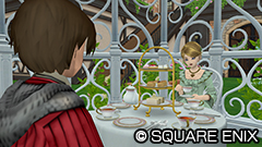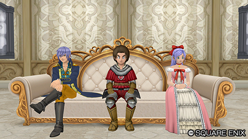 「エテーネ王国姉弟ソファ」を使用中の様子です。 「さわる」で表示するキャラクターを切り替えることができます。 ※特典アイテムコードはバージョン7.6[後期]メンテナンス後より使用可能となります。 |