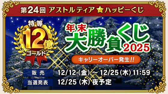 「年末大勝負くじ☆2025」は、キャリーオーバー発生中につき特等 12億ゴールド !!