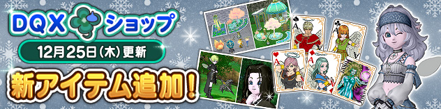 DQXショップでは、ここでしか手に入らないおしゃれアイテムや、便利な消費アイテムなどを販売中!