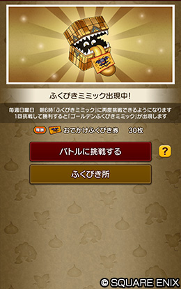 - ※「ゴールデンふくびきミミック」は、「ふくびきミミック」に挑戦後必ず出現します。