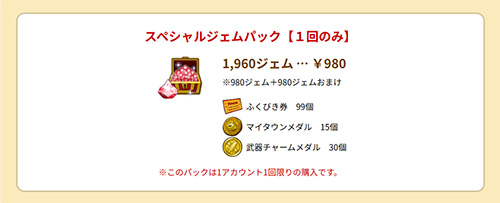 | スペシャルジェムパック【1回のみ】 | 980円(税込) / 1回のみ(※) |