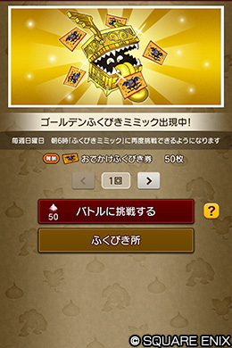 「ゴールデンふくびきミミック」は週に何度でも挑戦可能で、1回につき「おでかけふくびき券」を50枚獲得できます。
